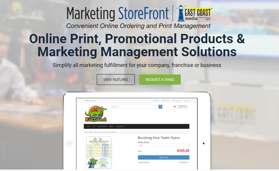 East Coast’s Marketing Storefront is an “amazon.com-like” portal where businesses store, view, and customize their marketing collateral. Materials are sensibly categorized based on your needs and users can access the cloud site from anywhere. Items can be viewed, ordered, proofed and shipped within minutes, and the reports will make budgeting and expense reporting easy all while benefiting from the cost savings and convenience.